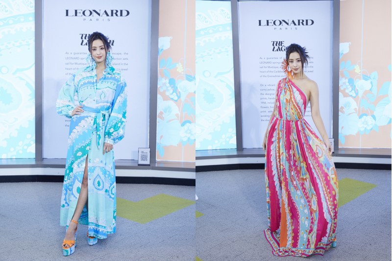 莫允雯以一襲LEONARD綠松藍印花絲質洋裝出場,展現時尚迷人的女神風範。她表示:「今天很開心來參加LEONARD新品發表活動,其實之前就參加過巴黎時裝周的時裝秀,那時候便很喜歡品牌的設計。LEONARD的服裝穿著起來輕柔舒適,就如同品牌最令人熟知的經典美譽「150公克幸福般的輕柔」,而且每季都有不同的花卉圖騰,充滿異國情調,很適合喜歡去海島國家的我,剪裁簡潔細緻,一件就能前往各種場合。」針對這次展演的春夏系列,莫允雯表示非常喜歡:「春夏色彩很繽紛,除了我身上穿著的綠松藍,還有亮橘,陽光黃及桃紅及淺粉色調,再加上品牌標誌性印花,立體修身的剪裁,讓我每一套都想穿穿看!」