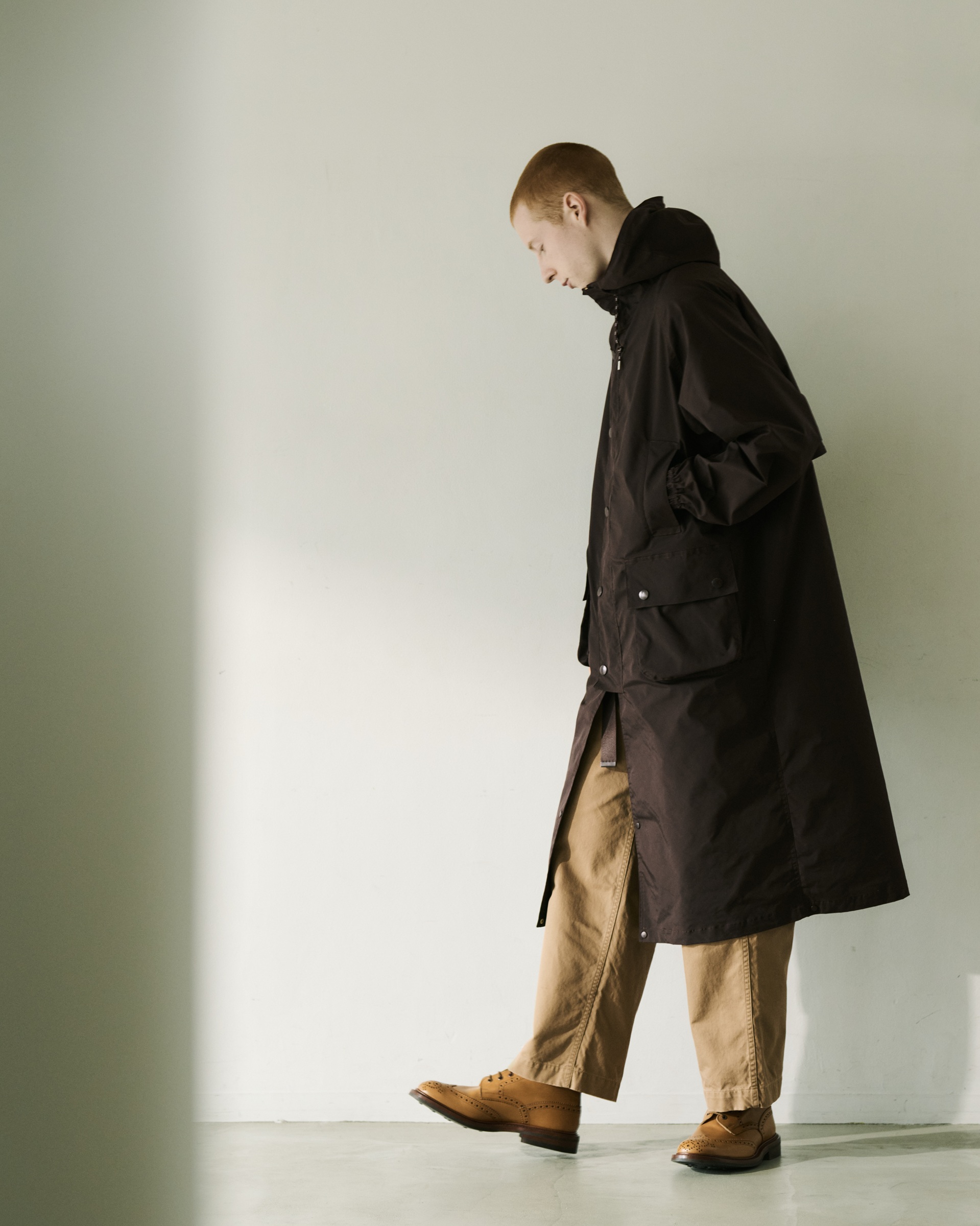 DAKS × Scye Twill Hooded Coat附拉鍊與連帽設計的機能外套,可透過下擺按扣切換為長版或半長版兩種輪廓。