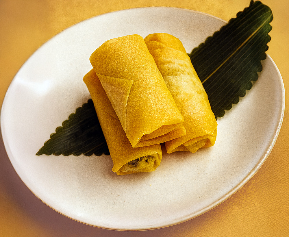 雞絲、香菇與筍絲交織成餡,外裹金黃酥皮,炸至喀滋作響,口感層次豐富,香菇的鮮與筍絲的脆在齒間交替。