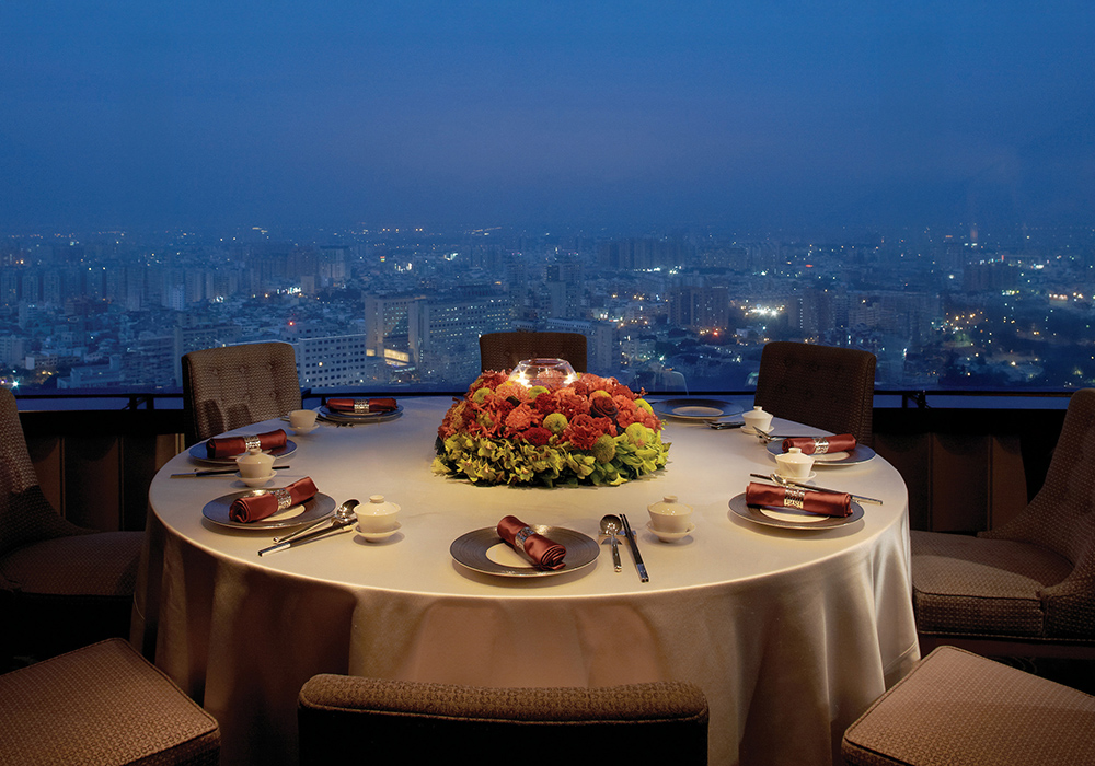 醉月樓坐擁府城唯一360度高空全景,白日遠眺安平港與台南市景,入夜則盡收燈火絢麗。(圖片來源:台南遠東香格里拉飯店)