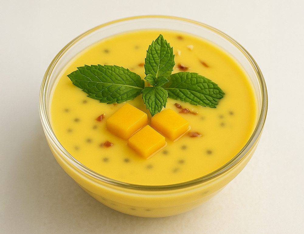 將新鮮芒果泥與椰奶、奶酪融合,入口冰涼順滑,香氣純淨,是盛夏最療癒的收尾。