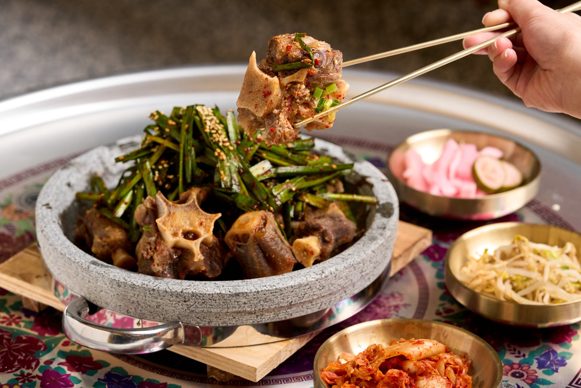 然而在台灣,這道料理卻鮮少出現。於是他們遠赴京畿道向擁有七十年手藝的老師傅學藝,歷經四、五年交涉,甚至一度考慮買下整家店,只為復刻那獨門風味。「一般排骨湯大醬味比較明顯,但這家的湯有很多香料層次。當然排骨也是特色,別人用錯部位,我們堅持只用每頭豬僅有兩塊的特殊排骨,那是靈魂所在。」鄭哲俊笑說。