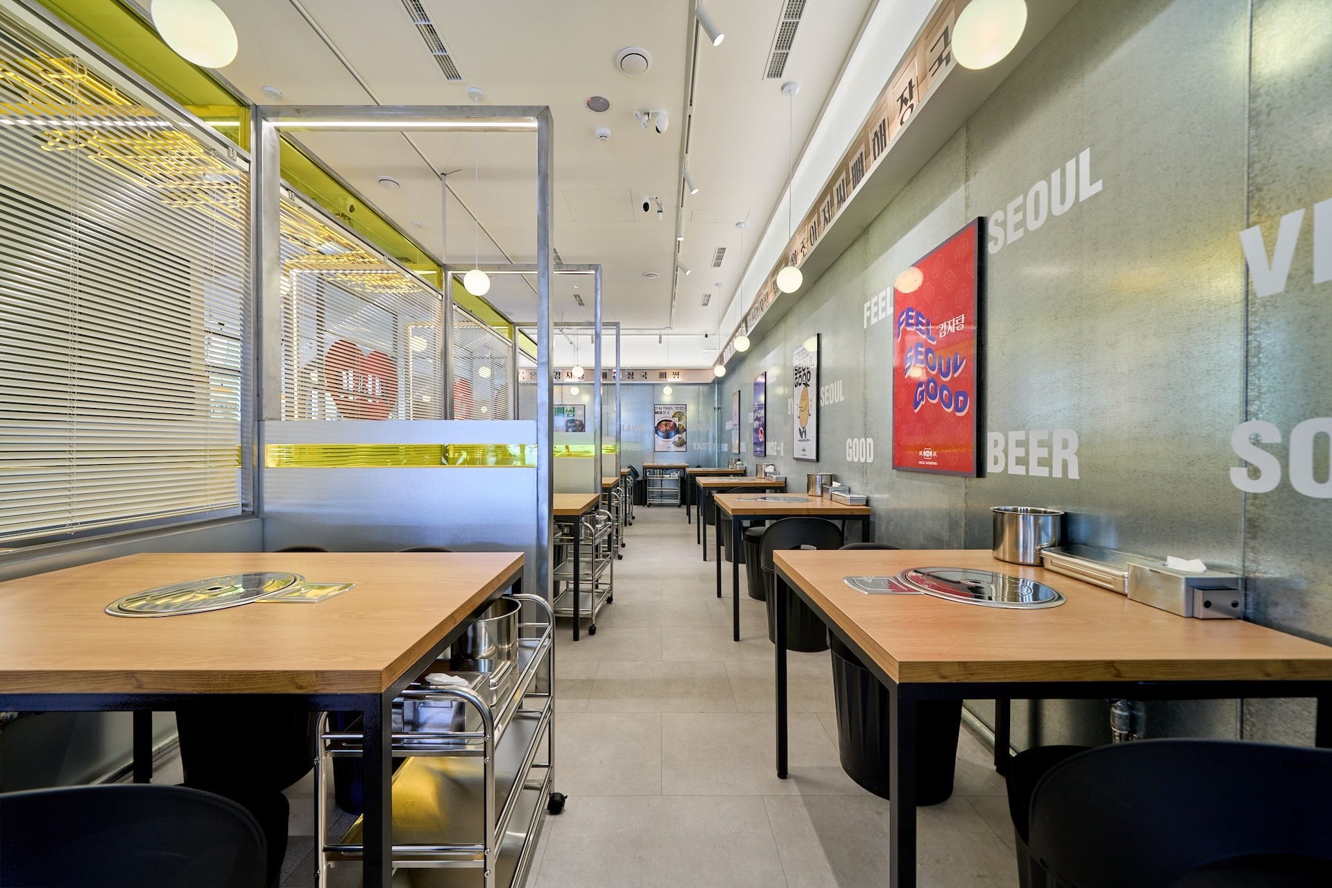 位於台中南屯區公益路二段的新店,是品牌首度以整棟建築呈現。外觀取自古樸韓屋形式,推門入內卻是對比強烈的現代韓系設計,象徵「穿越時空」的韓食體驗。一樓80席開放式座位搭配復古拍照機,二樓規劃五間包廂,兼顧社交與隱私。除了招牌馬鈴薯排骨湯,台中店更首發五道新菜:包括雪濃湯、牛尾湯、首爾蒸牛尾、髒髒的年糕與韓國雪冰,從正餐到甜品,完整呈現韓國日常的飲食節奏。