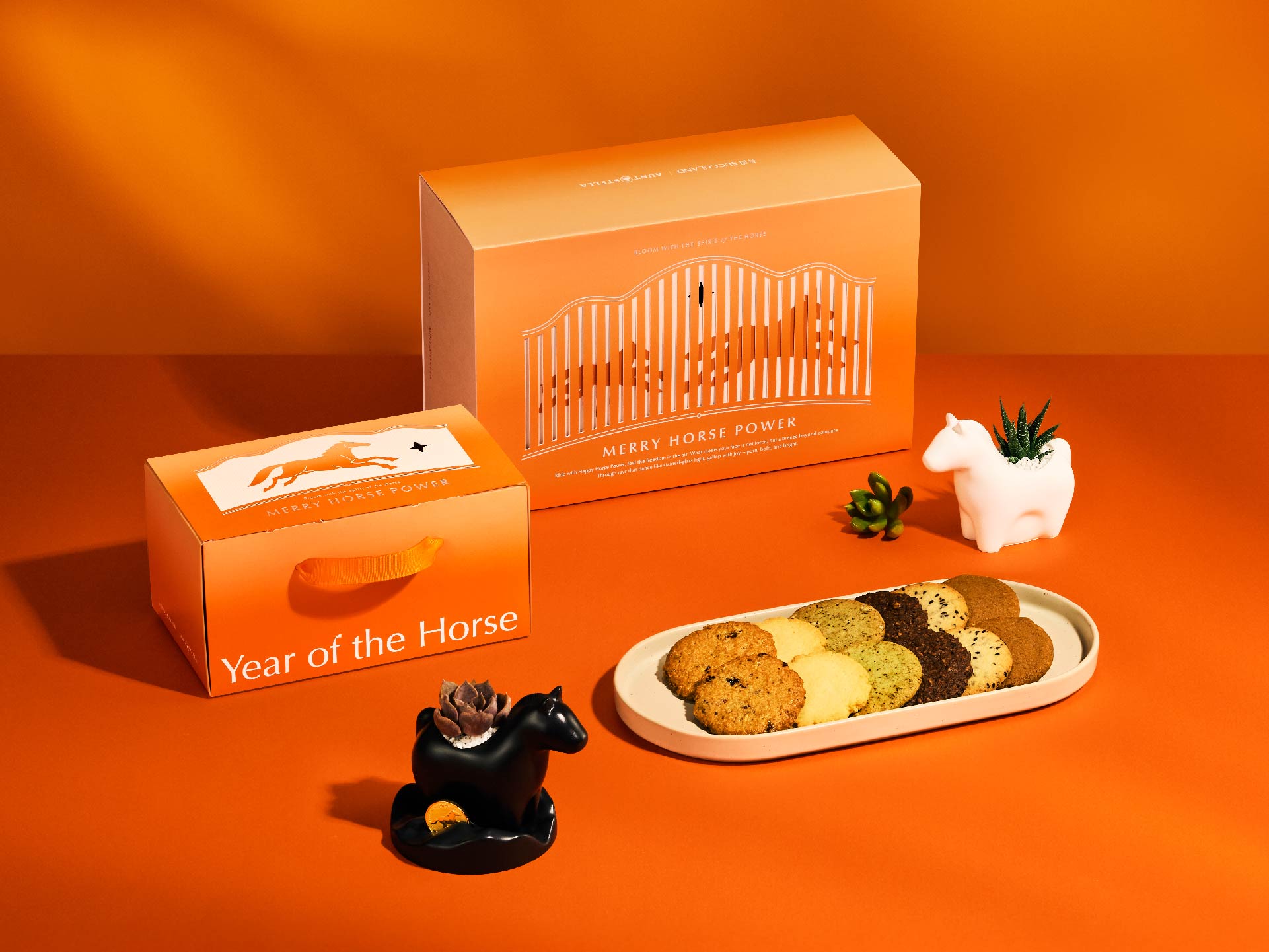 在年節送禮逐漸走向精緻化、故事化的市場潮流裡,今年率先交出亮眼創意的是台灣植栽設計品牌「有肉 SUCCULAND」與擁有近40年歷史的手作餅乾品牌Aunt Stella詩特莉。兩大品牌跨界合作推出的「快樂馬力」新年禮盒,不只是一盒年節贈禮,而是一場從開箱、嗅覺到綠意陪伴的生活體驗。