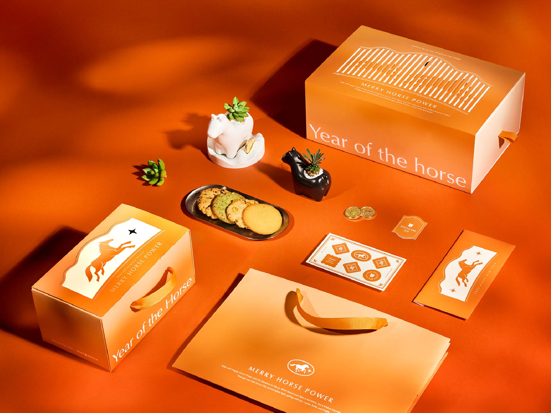 有別於過往單純的甜點或植栽禮盒,「快樂馬力」在包裝結構中加入光柵動畫,消費者只要打開盒蓋,馬兒便「即刻奔馳」,讓傳統寓意以現代手法重新演繹,一瞬間喚醒節慶的期待與驚喜。打開盒子後的三件儀式:「貼福、分餅、種綠」,象徵把好運、分享與生活美學一次送上門,以「會動的年味」定義 2026 的新年禮品美學。