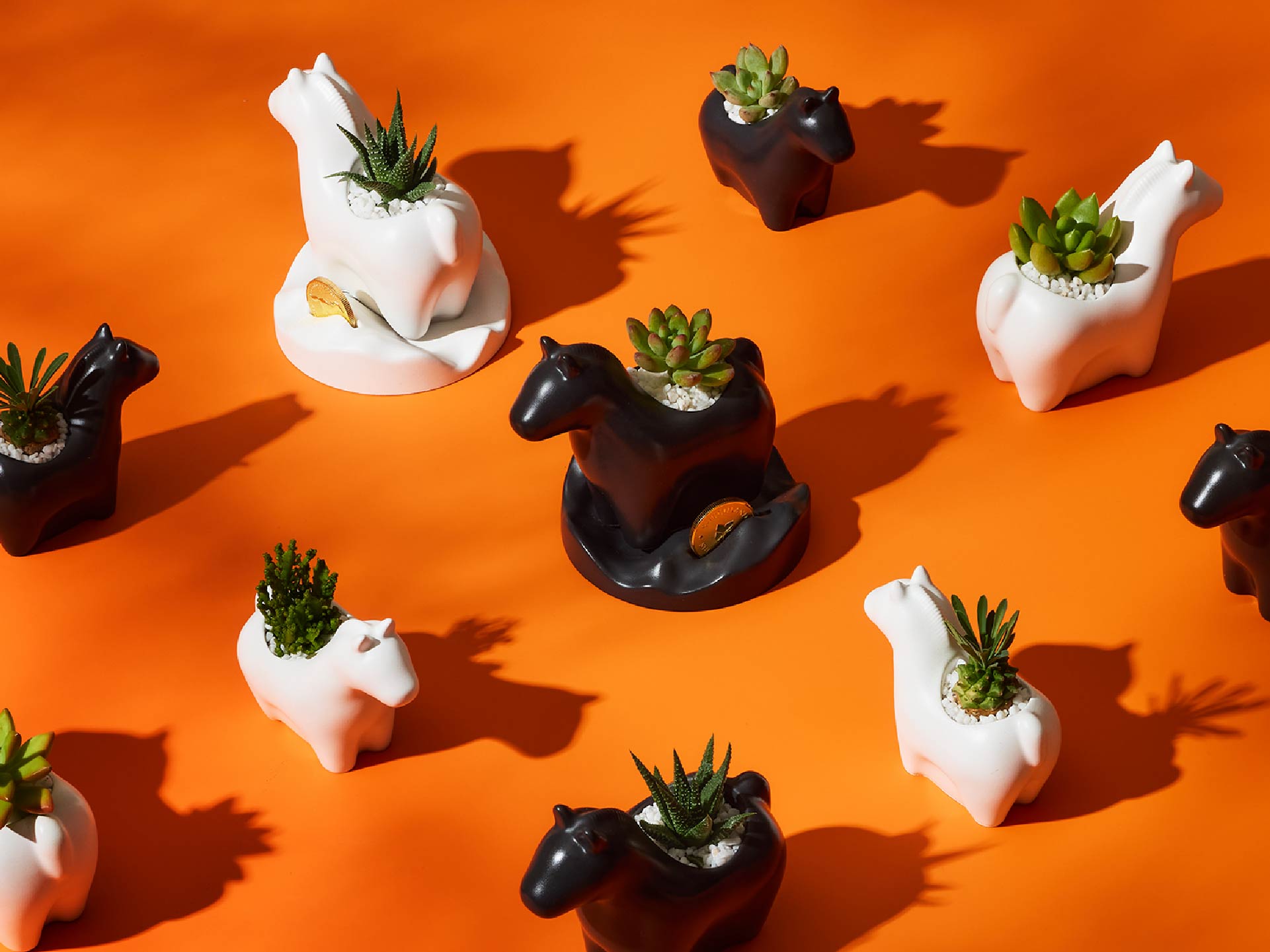 馬年限定植栽以黑、白兩款俐落造型呈現,將綠意與年味一同安放於日常桌面。(圖片來源:有肉SUCCULAND)