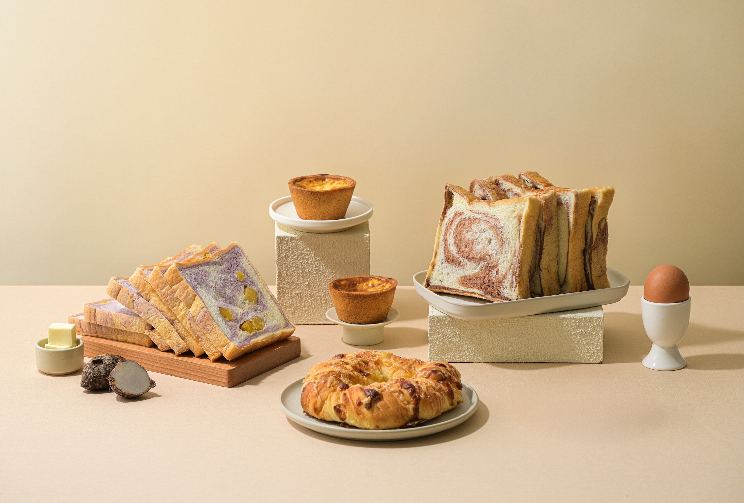 林坤緯同步開發黑糖麻糬吐司與紫芋地瓜吐司等多款新品,將19號乳製品的醇厚質感,轉化為餐桌上的日常風景。(圖片來源:峻鼎食品)
