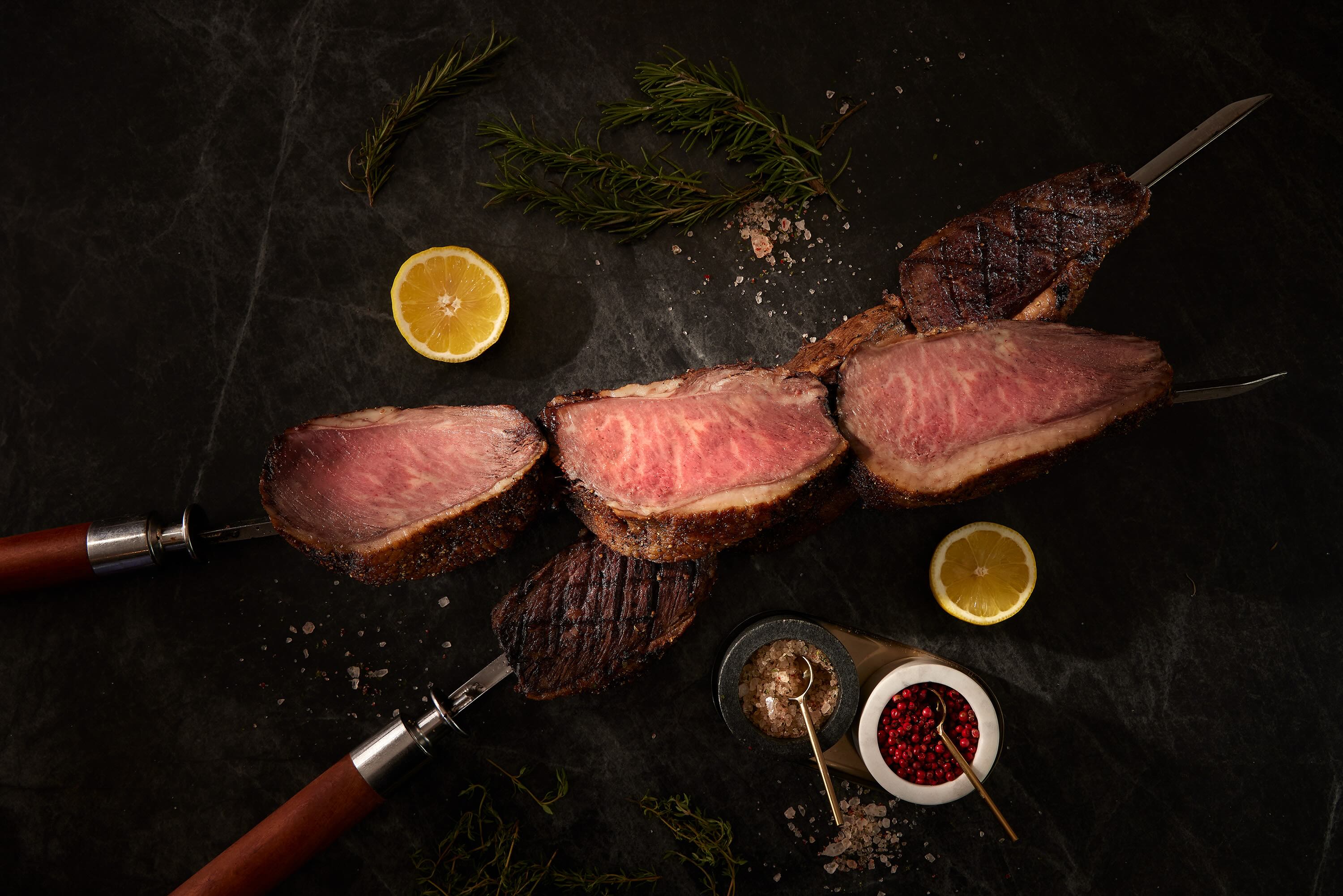 頂級和牛四吃之一的「爐烤和牛臀上蓋」,透過爐烤技術維持肉質彈性與鮮美,厚切鮮嫩、肉香滿溢。(圖片來源:台北寒舍艾美酒店)