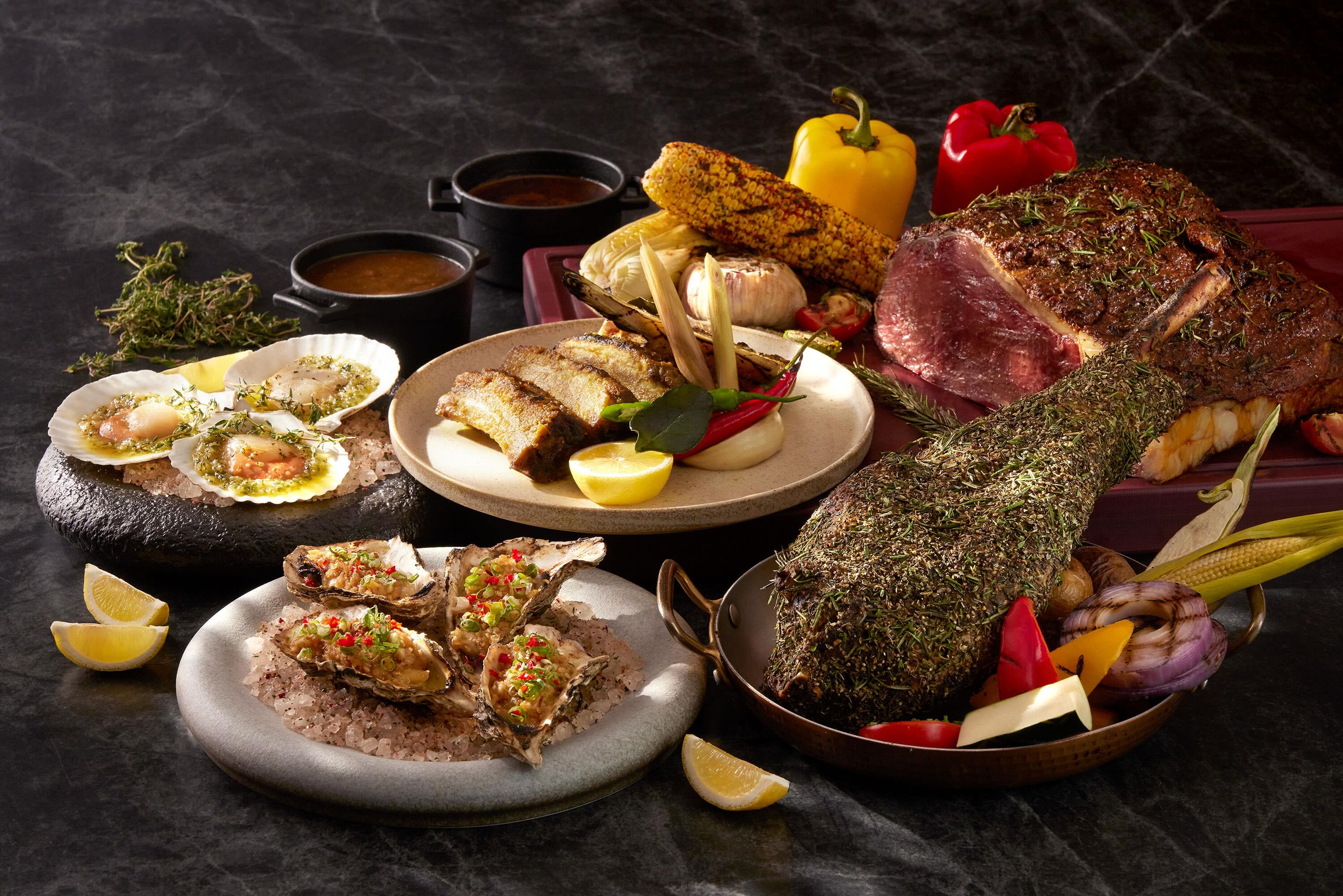 爐烤檯集結火烤大生蠔、馬沙拉烤羊腿等海陸盛宴,香氣撲鼻的現切爐烤牛肉更是老饕必嚐亮點 。(圖片來源:台北寒舍艾美酒店)
