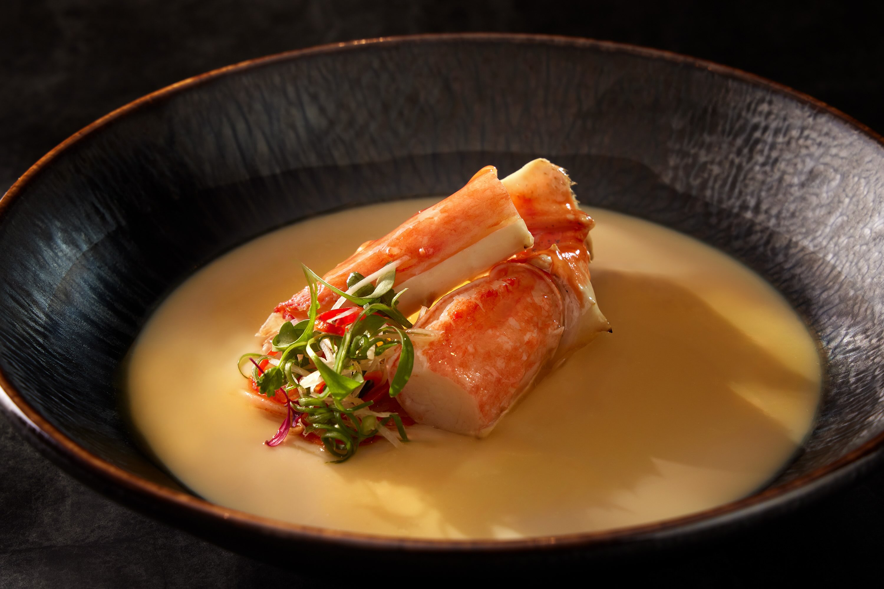 假日午晚餐限定加碼「帝王蟹腳花雕蒸」,滑嫩蒸蛋透出淡雅花雕酒香。(圖片來源:台北寒舍艾美酒店)