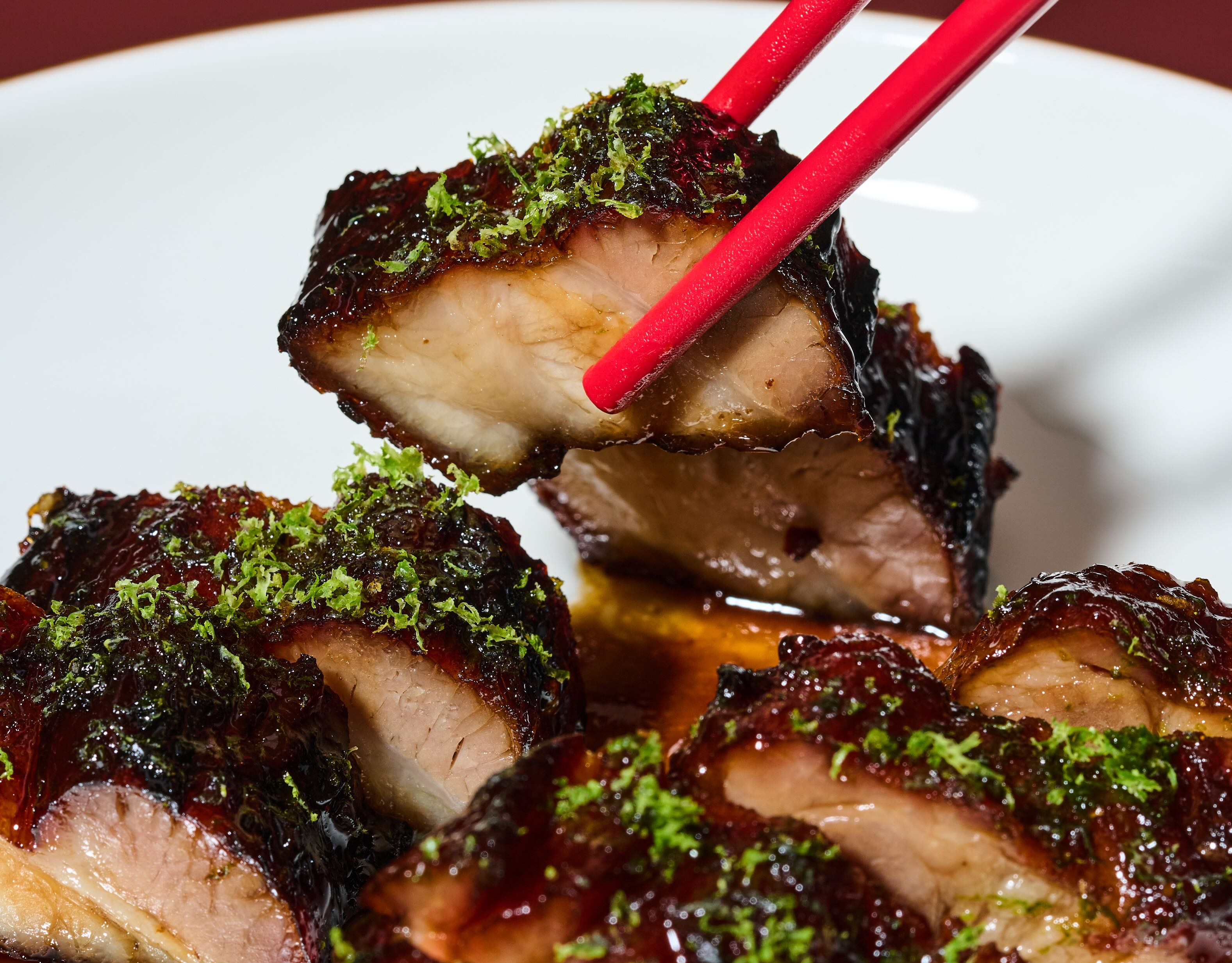 一次吃到蜜汁叉燒與如今在香港也罕見的黑叉燒,兩段式烘烤、回乾、焦糖化處理打造香脆與蜜亮的雙重境界。(圖片來源:三點三DIM SUM TIME)