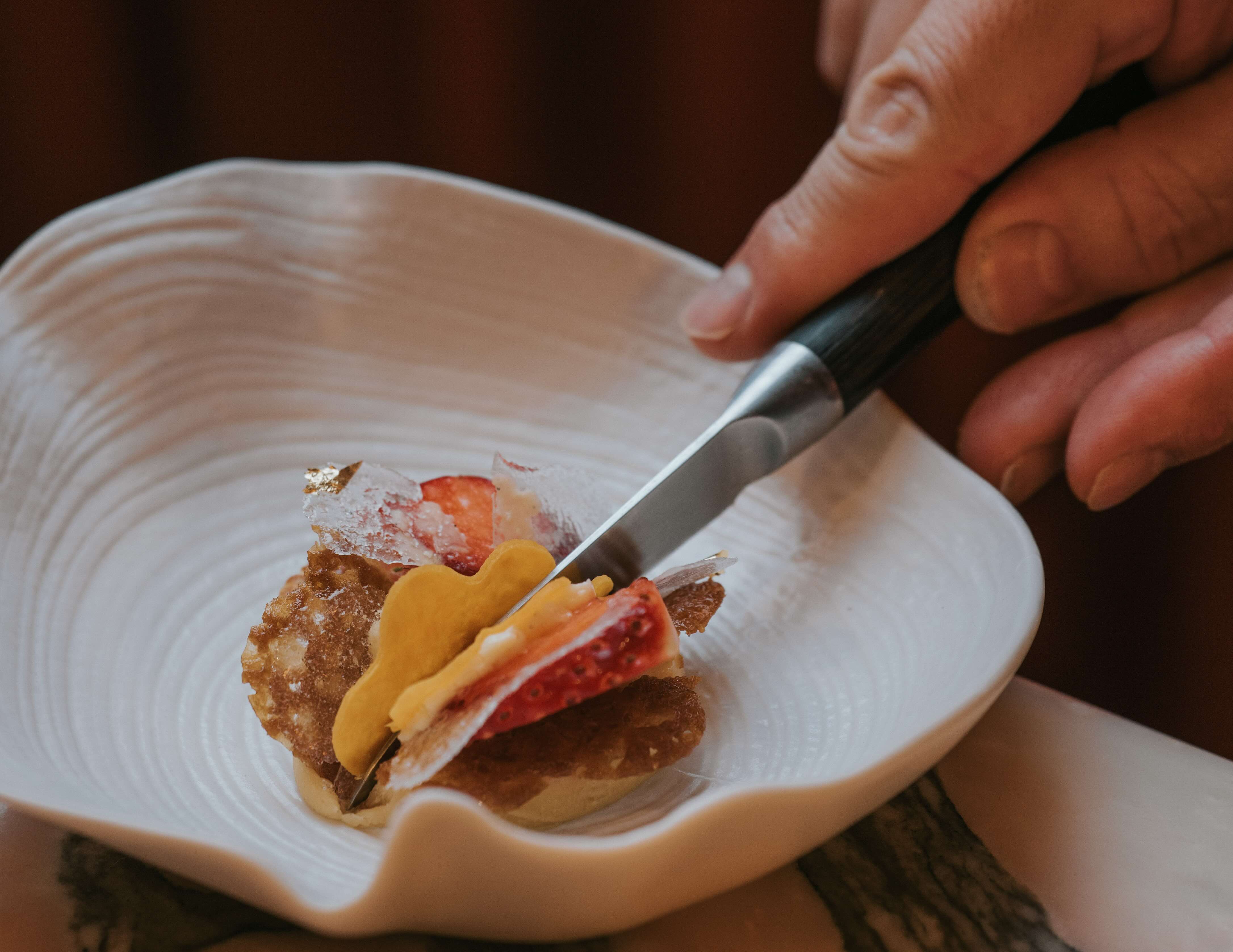 第二站來到台中Sōzai by LayLow。餐廳以Phantom Ultimate三款外觀配色為靈感,發展出「森林之鳴」、「金色擊響」、「灰頻界線」三道小點,將視覺色彩轉化為味覺層次。這裡談的不只是聲音的大小,而是高低頻之間的平衡、灰噪音般的城市節奏,以及在極限狀態下仍能保持乾淨細膩的聲學控制——正如 Phantom Ultimate 的核心技術所追求的精準與穩定。