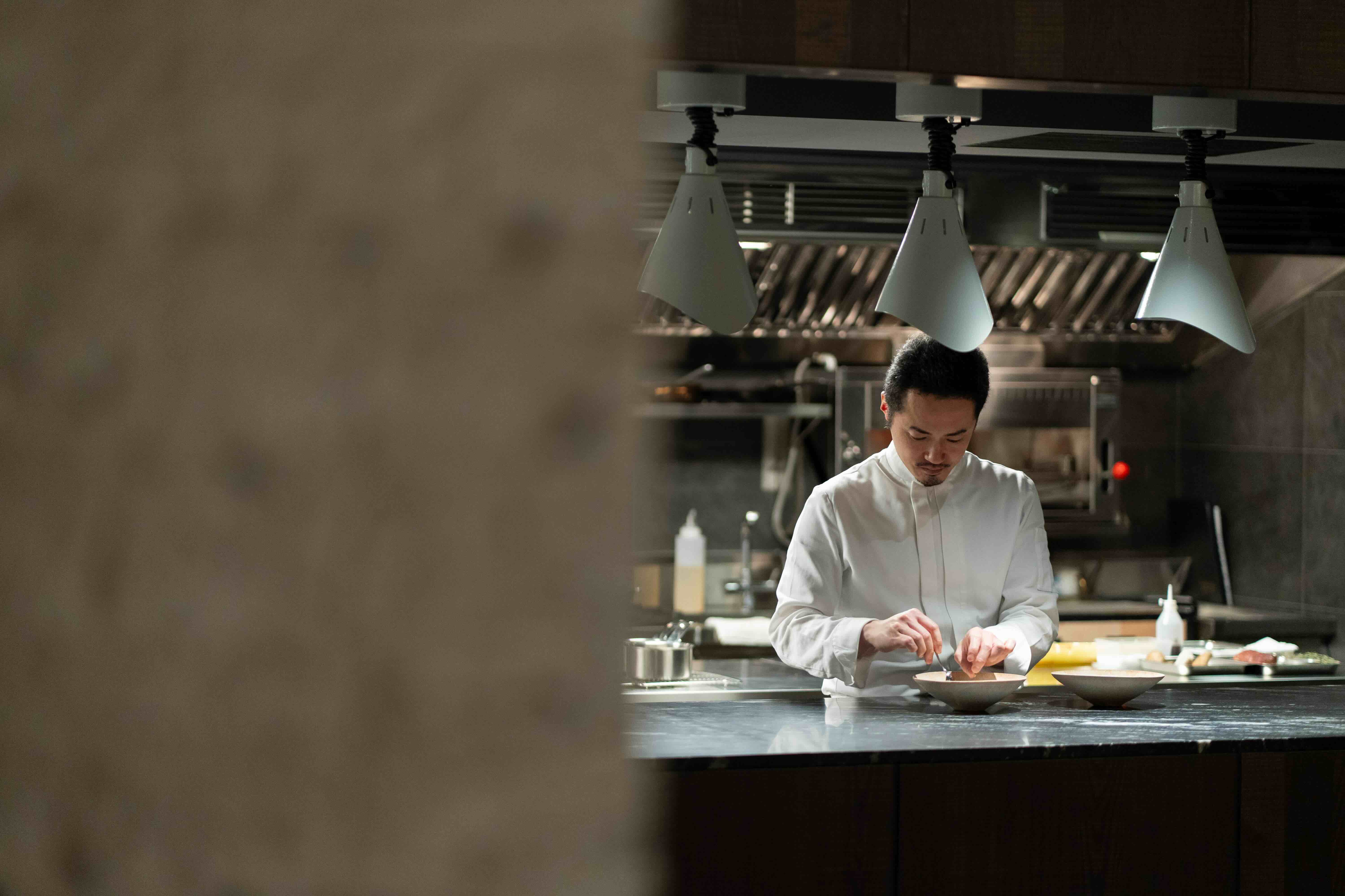 飛松主廚始終堅持不使用過量食材、不炫技,以「誠實」與「自然」作為料理核心。從他堅持選用家鄉九州的器皿(如川口武亮、岩切秀央等作家作品),到對食材浪費的嚴格控管,都能感受到日本職人對萬物的感激之情。