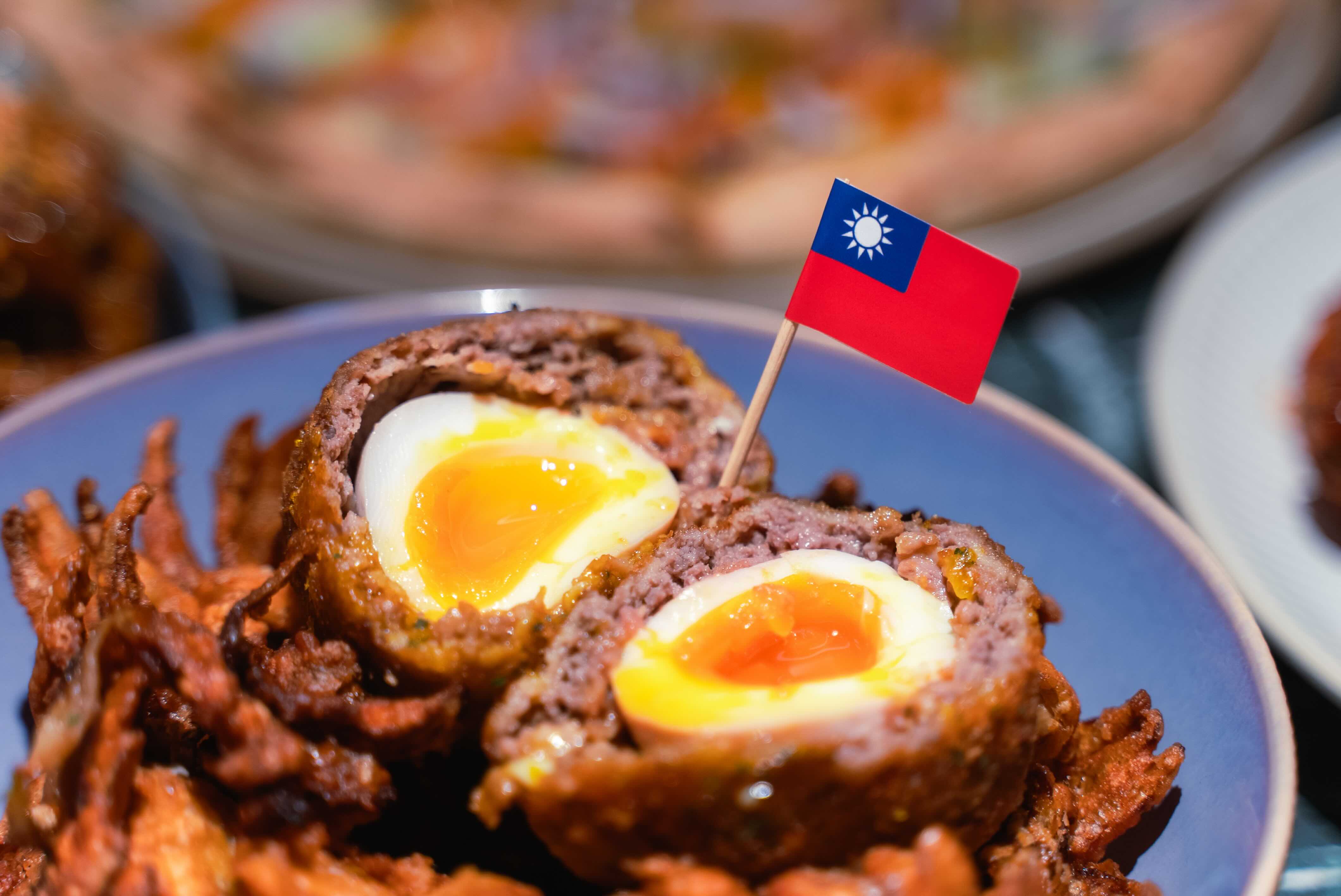 它的核心,是台灣目前唯一一款土雞生食級蛋,米其林餐廳指定採購,全台一個月產量不超過兩萬顆;外層裹的,是台灣市佔率高達七八成的日本黑毛和牛絞肉,油花細密、入口即化;底座,是一朵金黃酥炸的洋蔥花,香氣層次媲美專業法式料理。這顆由GUMGUM Beer & Wings、和牛十圖、協興蛋業三方聯名推出的「和牛抱蛋」,從食材到料理哲學,都是一記扎扎實實的滿壘全壘打。