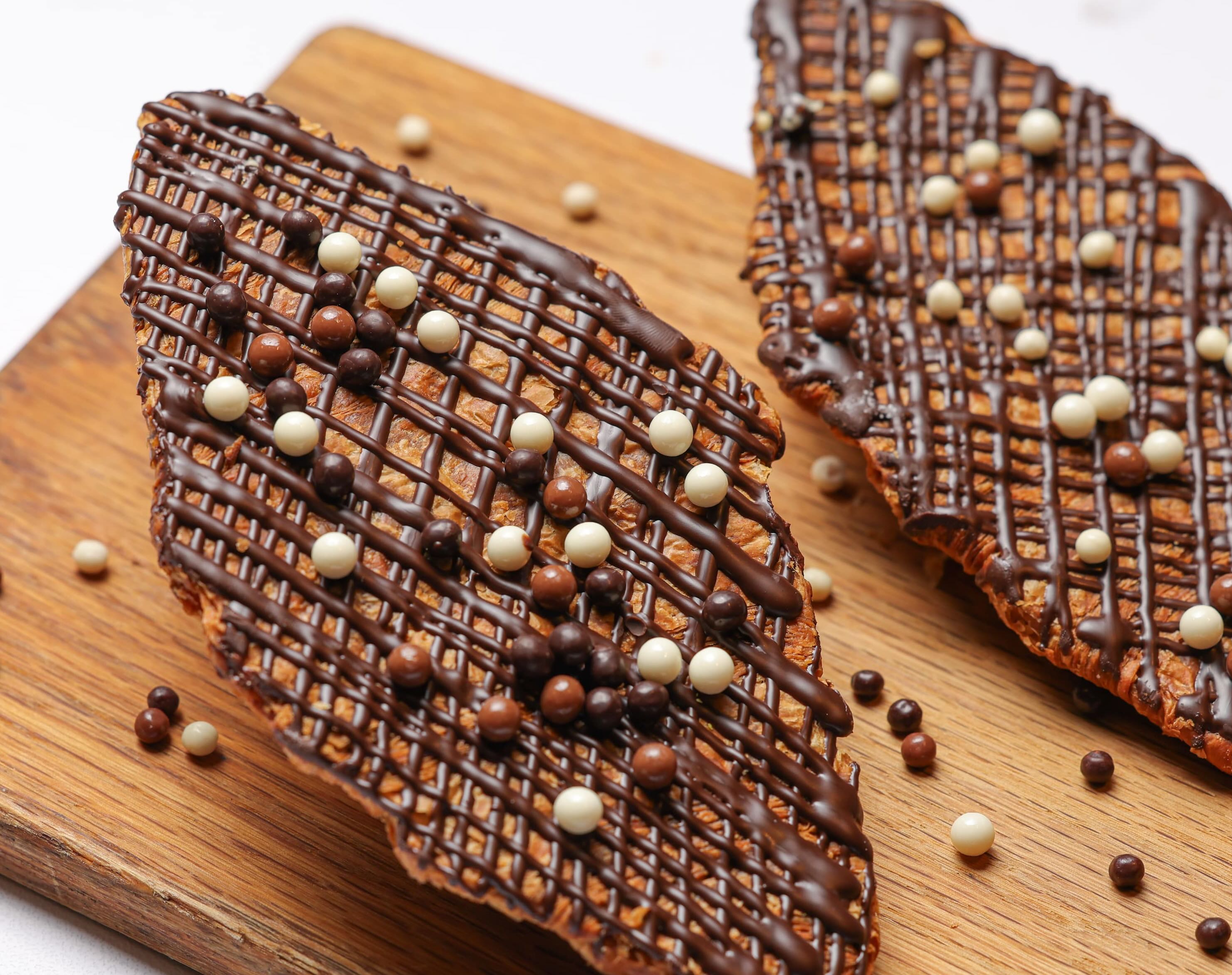 其中最受矚目的,是搭上「杜拜巧克力」全球熱潮推出的杜拜巧克力可頌。以Kataifi細麵、濃郁堅果醬與可可餡料包覆於酥皮之中,切開瞬間迸出的豐富剖面,已在韓國年輕族群的Instagram Reels中累積大量傳播,預售期間便直接登上銷售冠軍。