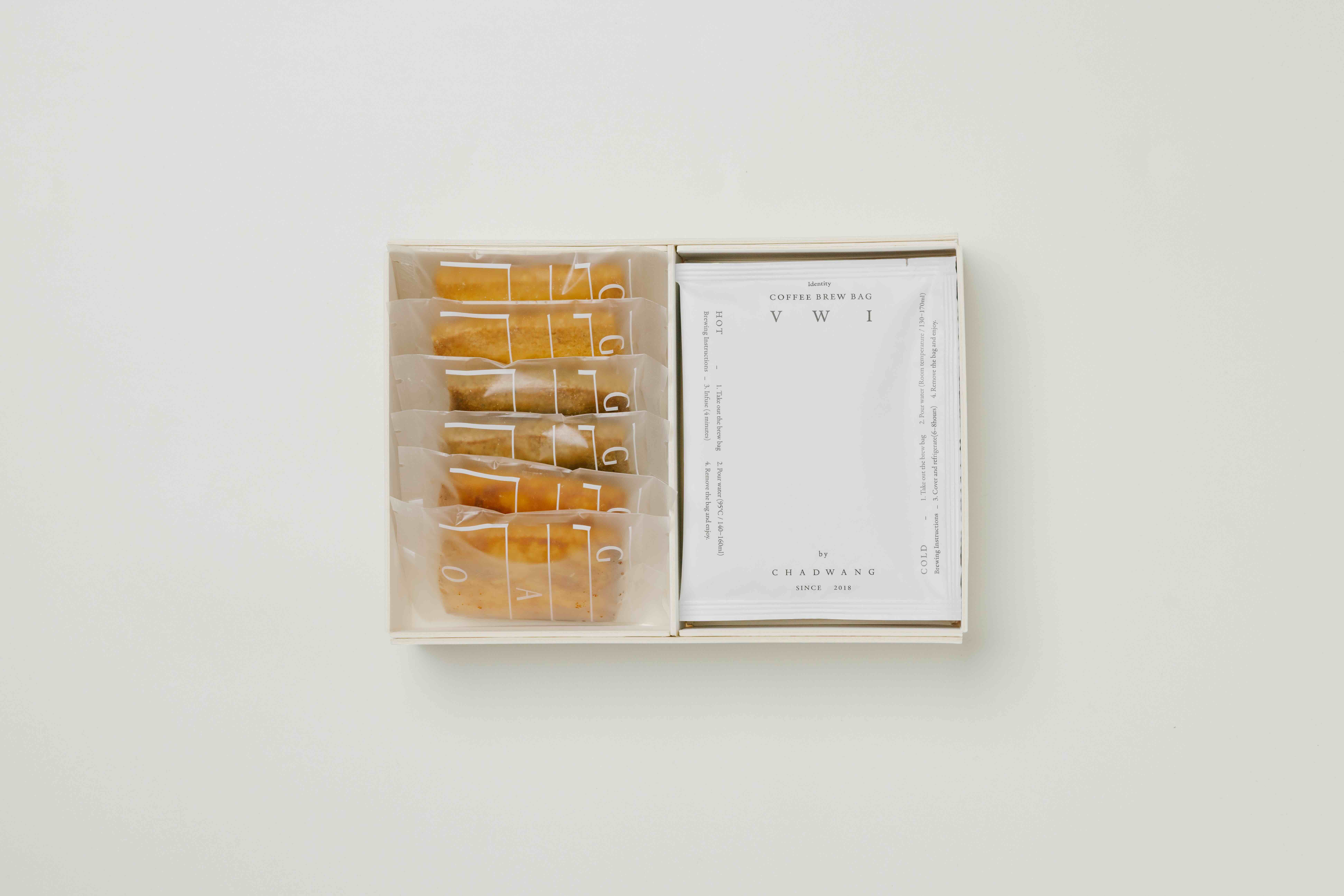 搭配的三款VWI咖啡濾泡,各有清晰的風味定位:「黑」是哥倫比亞與衣索比亞混豆,帶杏仁、焦糖與柑橘酸;「白」是衣索比亞日曬,呈現紅花、百香果與桃子甜;「金」是哥倫比亞水洗,富有堅果醬、可可粉與黑糖圓潤感。三款選豆本身就是一個完整的精品咖啡論述,與餅乾的搭配邏輯一脈相承。