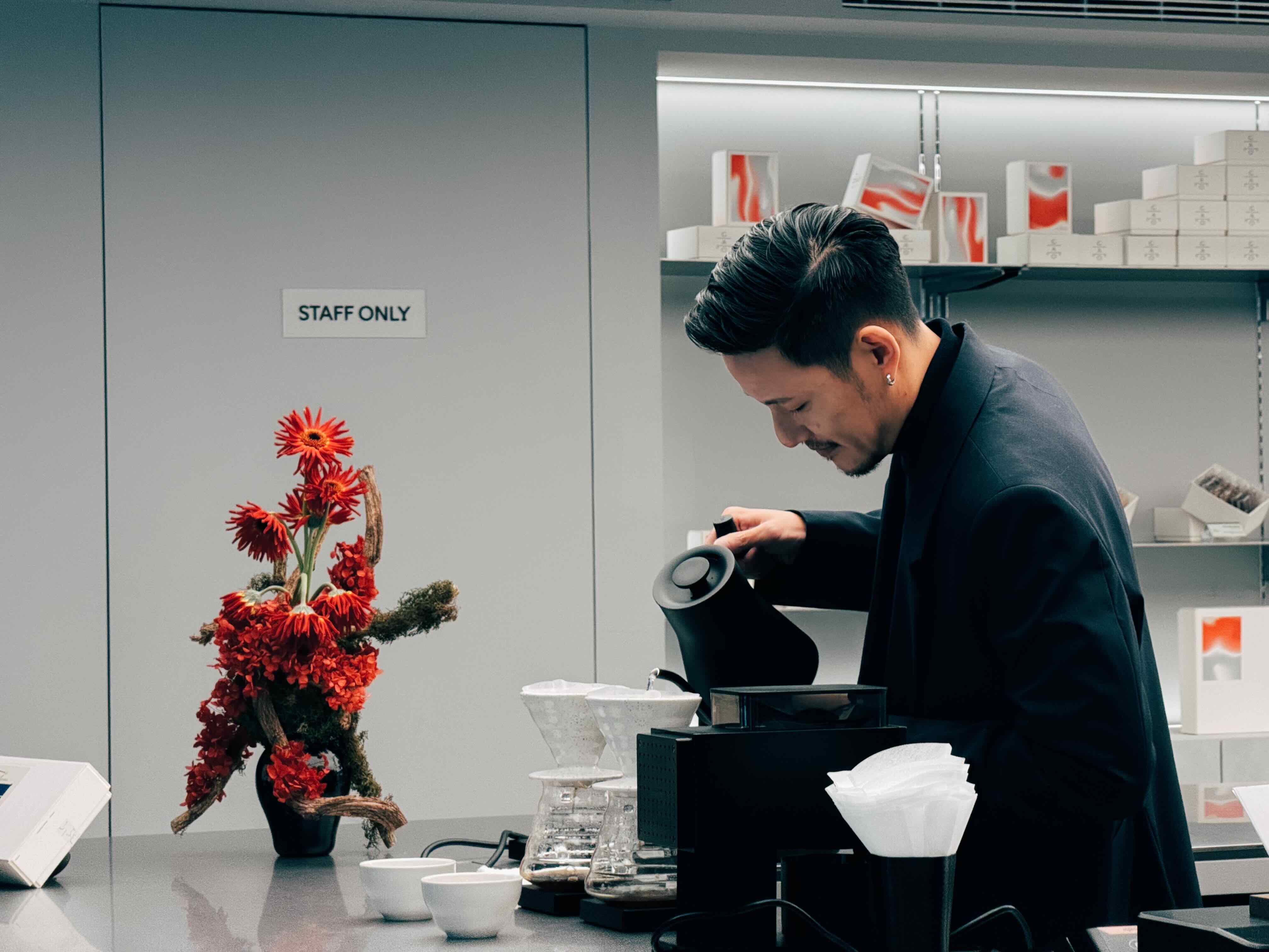 二月底的手沖體驗由世界沖煮大賽冠軍王策親自操刀,以精準控制水流與萃取節奏,展現三態在風味中的動態轉換。(圖片來源:高GAO Taipei)