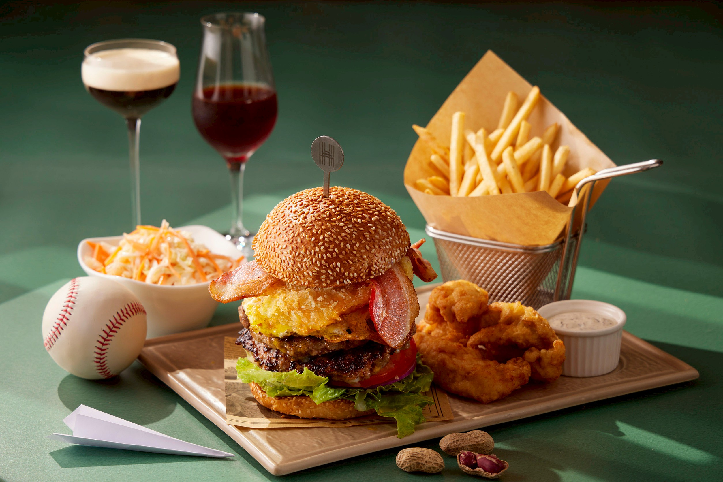 LA FARFALLA 餐廳同步推出美式花生雙層牛肉炸起士漢堡,以濃郁飽滿的口感與調飲相互呼應,帶領賓客重拾單純的快樂記憶。(圖片來源:台北艾麗酒店)