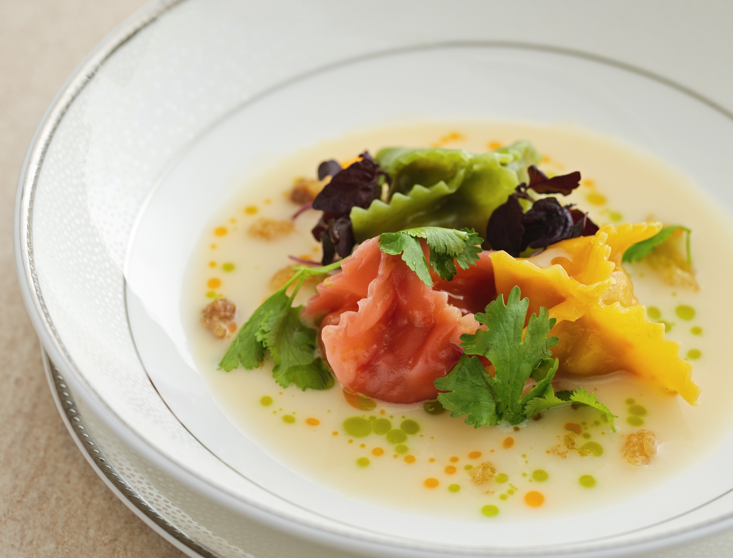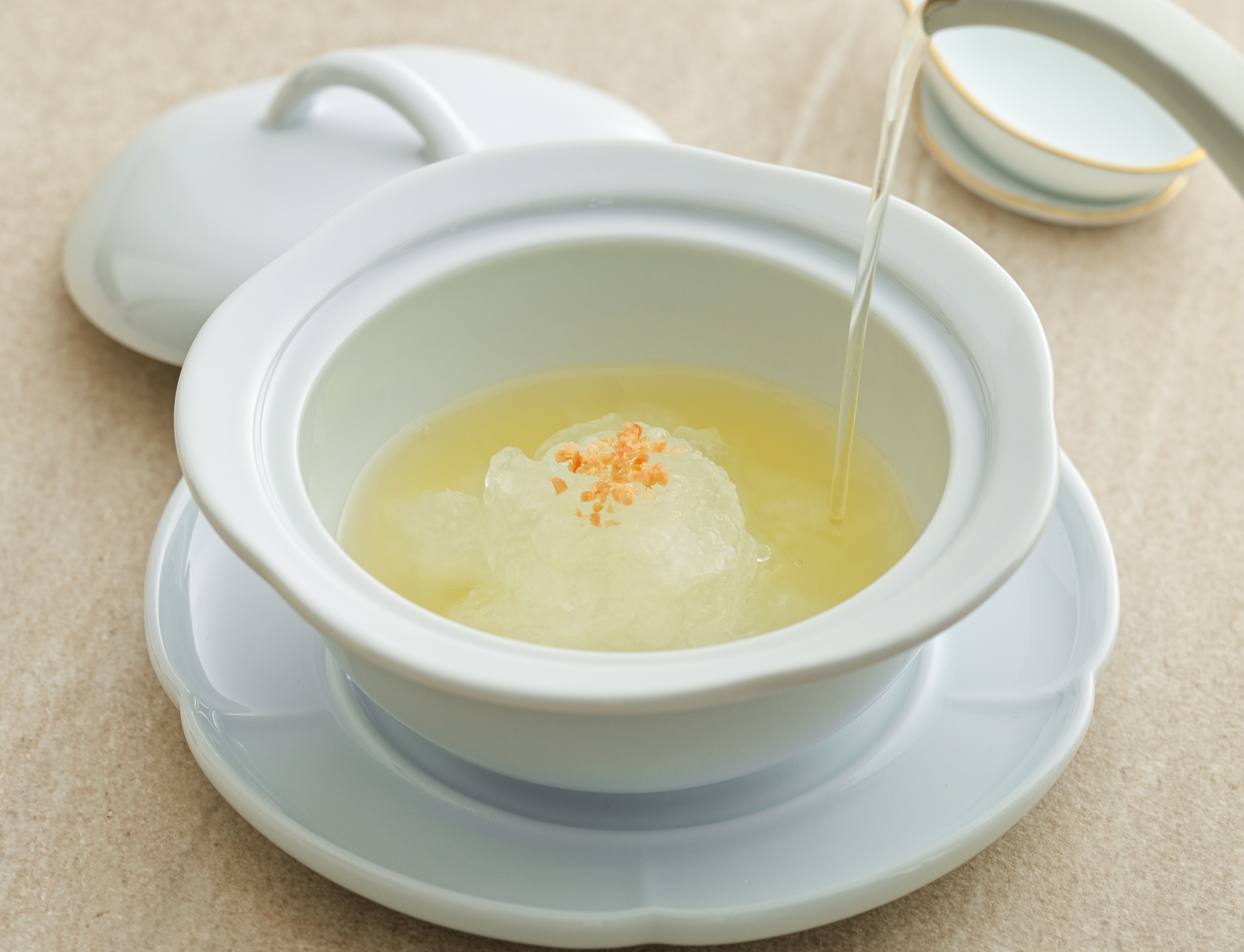 老母雞、金華火腿、豬骨慢燉八小時,經三次掃湯澄清的茶褐色清湯,托著如燕窩般半透明的冬瓜細絲,官府川菜「以湯定菜」的極致示範。(圖片來源:嘉林餐旅集團)
