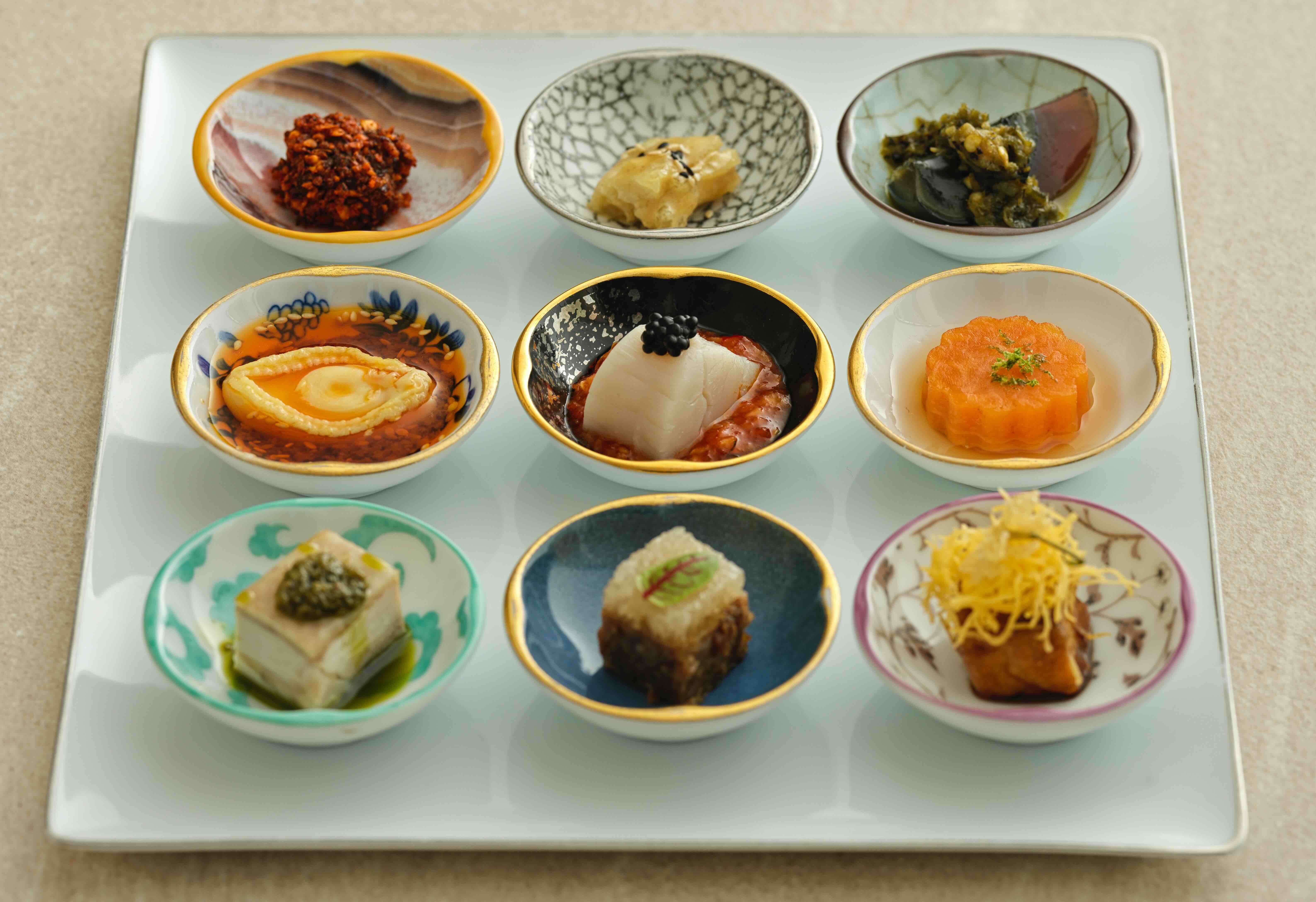 八種味型、九種色彩,從煙香、荔枝、椒麻到怪味,川菜二十四味型的精準前奏,依序展開層次分明的味覺邏輯。(圖片來源:嘉林餐旅集團)