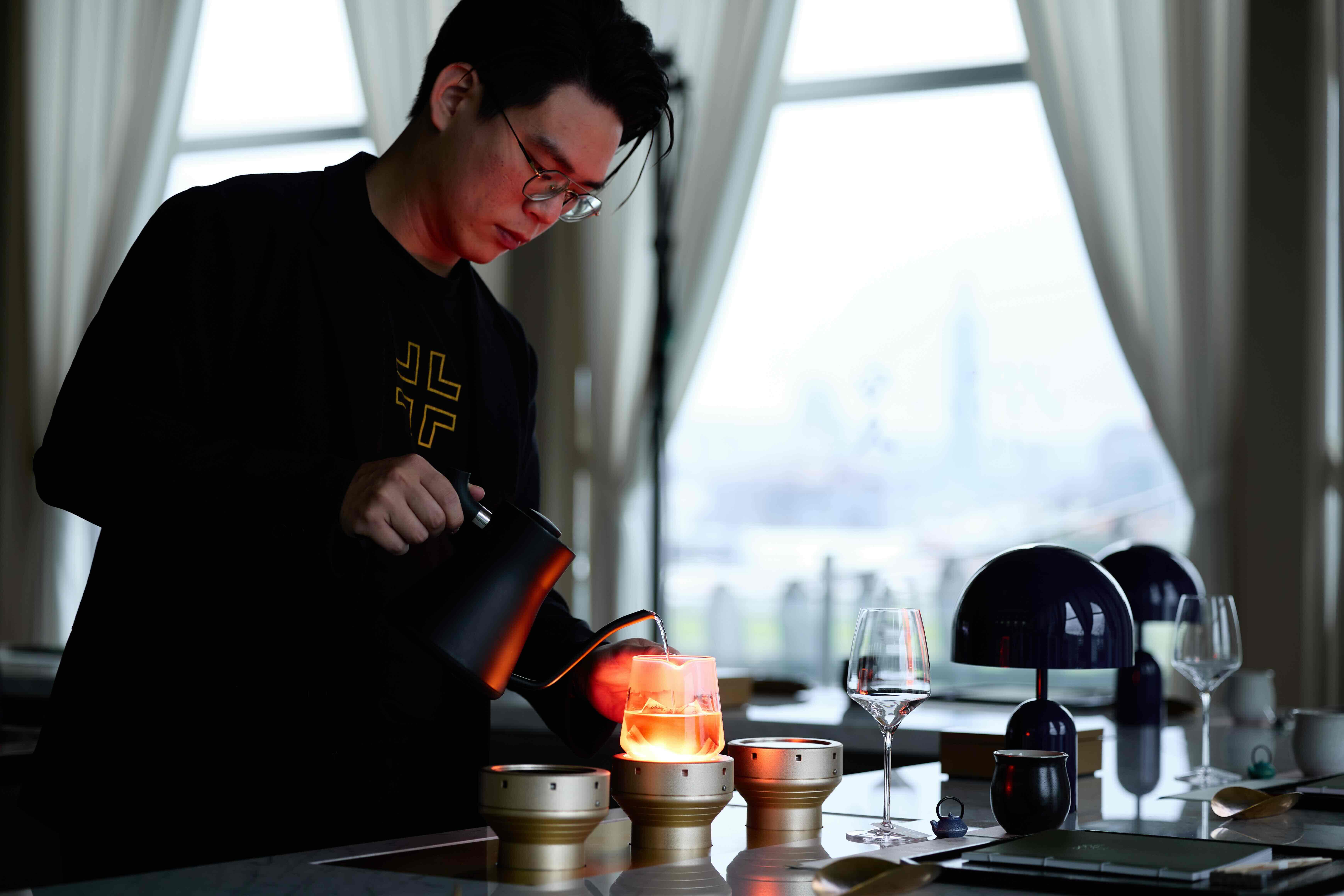 十二道料理之外,寶元紀為這場餐會設計了另一套完整的搭配味覺。六款珍稀藏茶貫穿餐序,文山包種茶的細膩花香迎接第一道柚子釜,岩茶水仙的礦物木質調烘托湯品鮮甜,最後以東方美人的溫潤甜感送別「鮎」(香魚)的油脂焦香。每一款茶的選配,都是寶元紀元茶師Ivy與主廚反覆溝通磨合的成果。