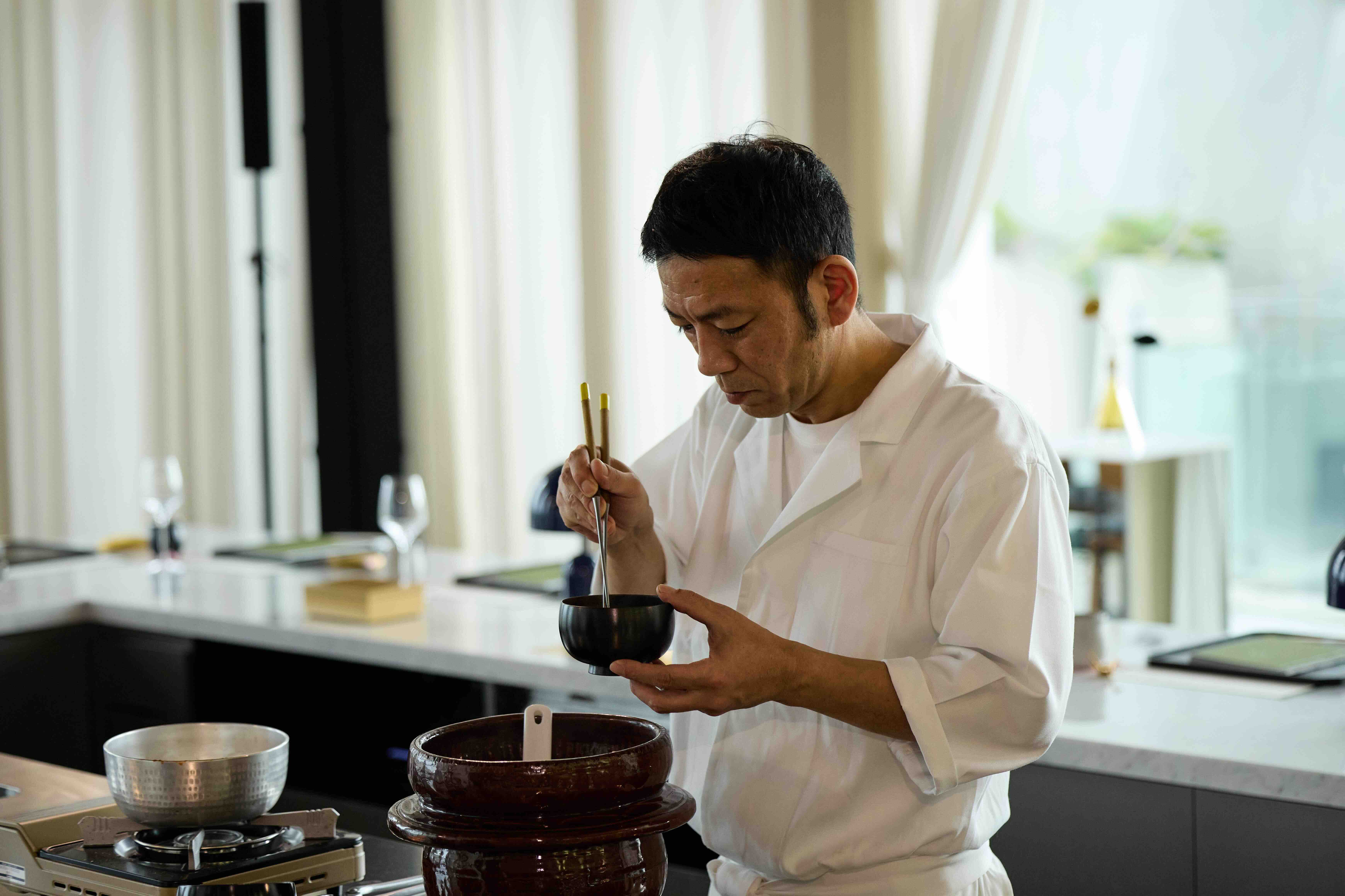 關於水質適應,他也說了一件實際的事:「台灣的水質跟京都不一樣,我們在許高湯的時候,可能昆布與柴魚的比例會有所調整,例如柴魚多放一些、昆布放少一點。」這些都是多年異地客座所積累的實戰經驗。